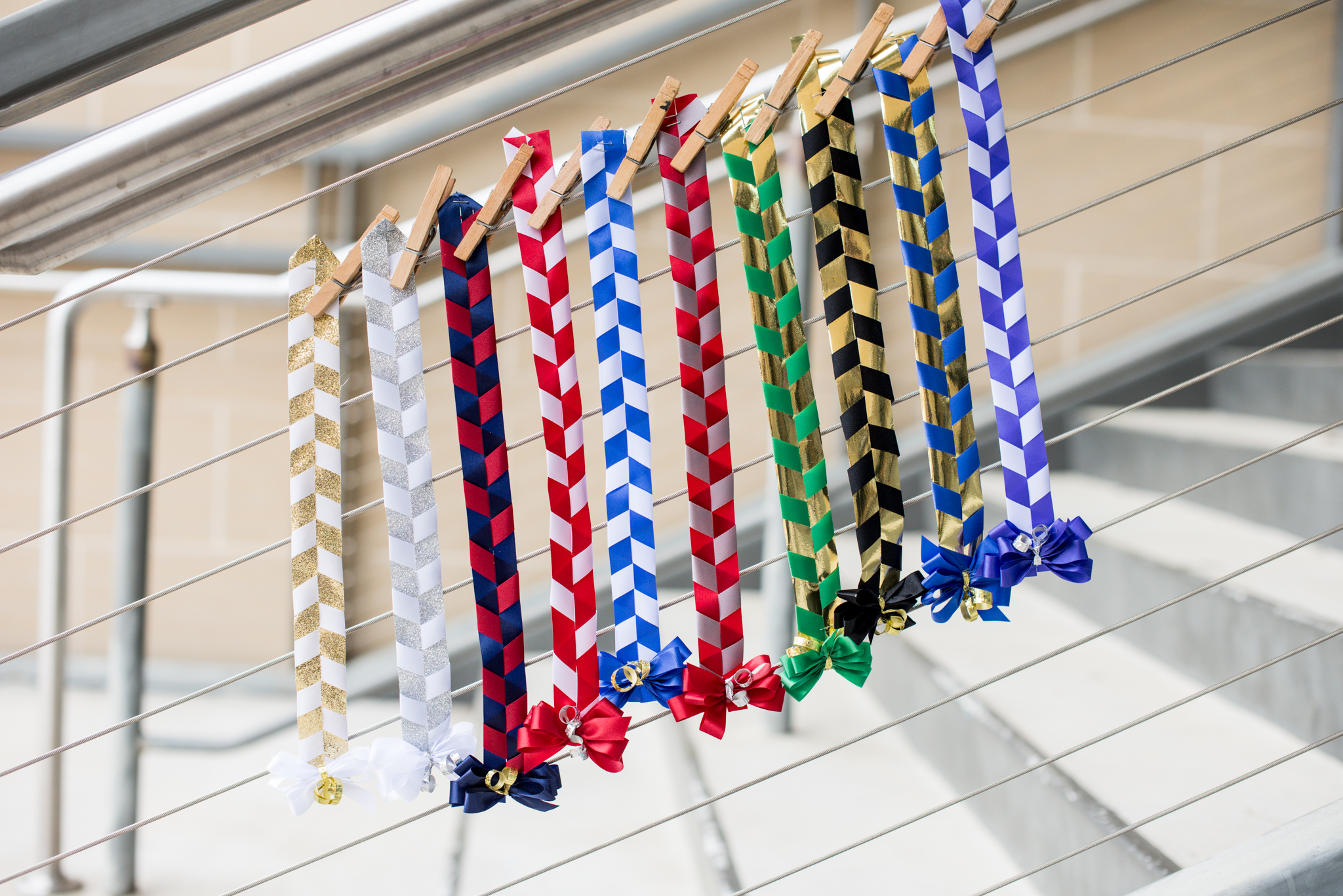 Designer uses metallic or glitter ribbons.